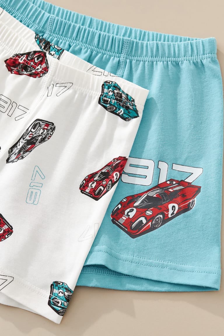 Fuel your little one's imagination with this boys' cartoon car boxer shorts set! Featuring two fun designs—one in vibrant aqua blue with a bold red race car graphic, and the other in crisp white adorned with a playful all-over car print—these boxers are perfect for young car enthusiasts. Crafted from ultra-soft, breathable fabric, they provide all-day comfort and durability for active kids. Available in multiple sizes to ensure the perfect fit, these boxer shorts make everyday wear exciting and comfortable. Add a pop of color and fun to your child's wardrobe with this stylish and practical set!
