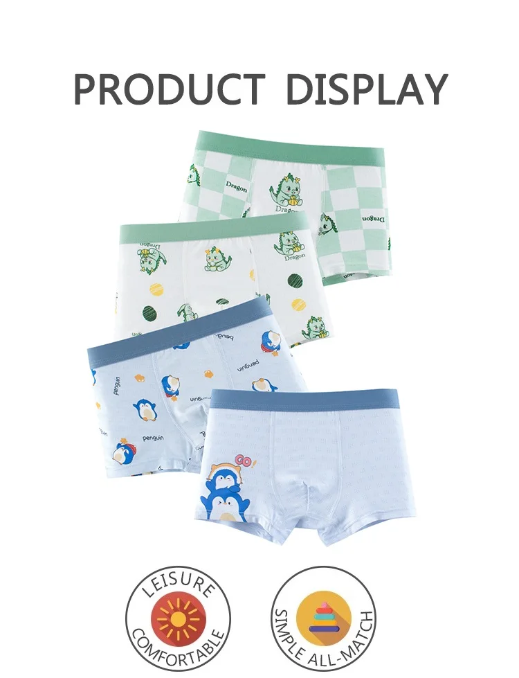 Boys' Summer Ice Silk Breathable Underwear Children'S Print Flat Underwear
