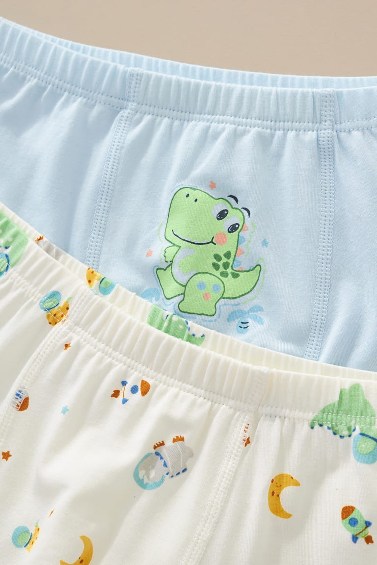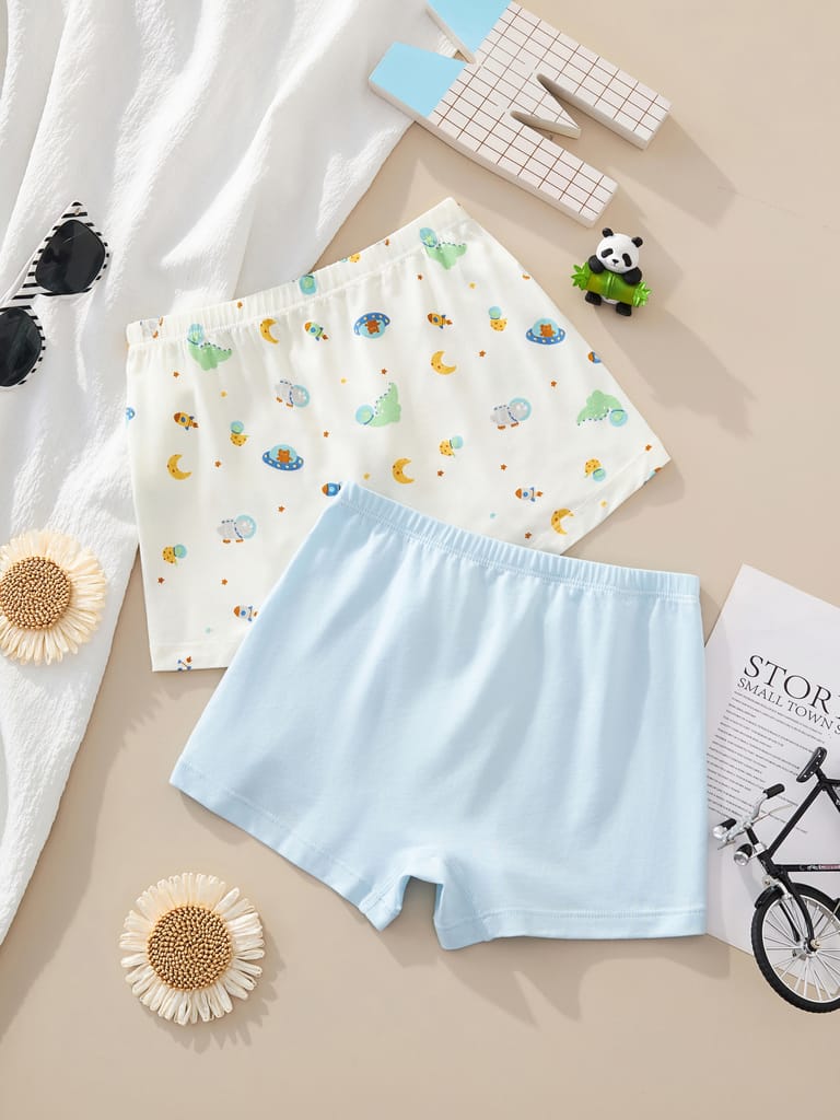 Make every day more fun and comfortable for your child with this adorable set of cartoon print boxer shorts. Crafted from ultra-soft, breathable fabric, these boxer shorts are gentle on sensitive skin and perfect for active little ones. The set includes two vibrant pairs: one featuring playful dinosaurs on a light blue background, and the other adorned with charming animals and moons on crisp white. Designed for all-day comfort, these shorts also have a flexible waistband for a secure fit and easy movement. Available in a range of sizes to suit toddlers and kids, they’re ideal for daily wear, playtime, or layering under clothes. Give your child the perfect combination of style and comfort with these cute essentials!