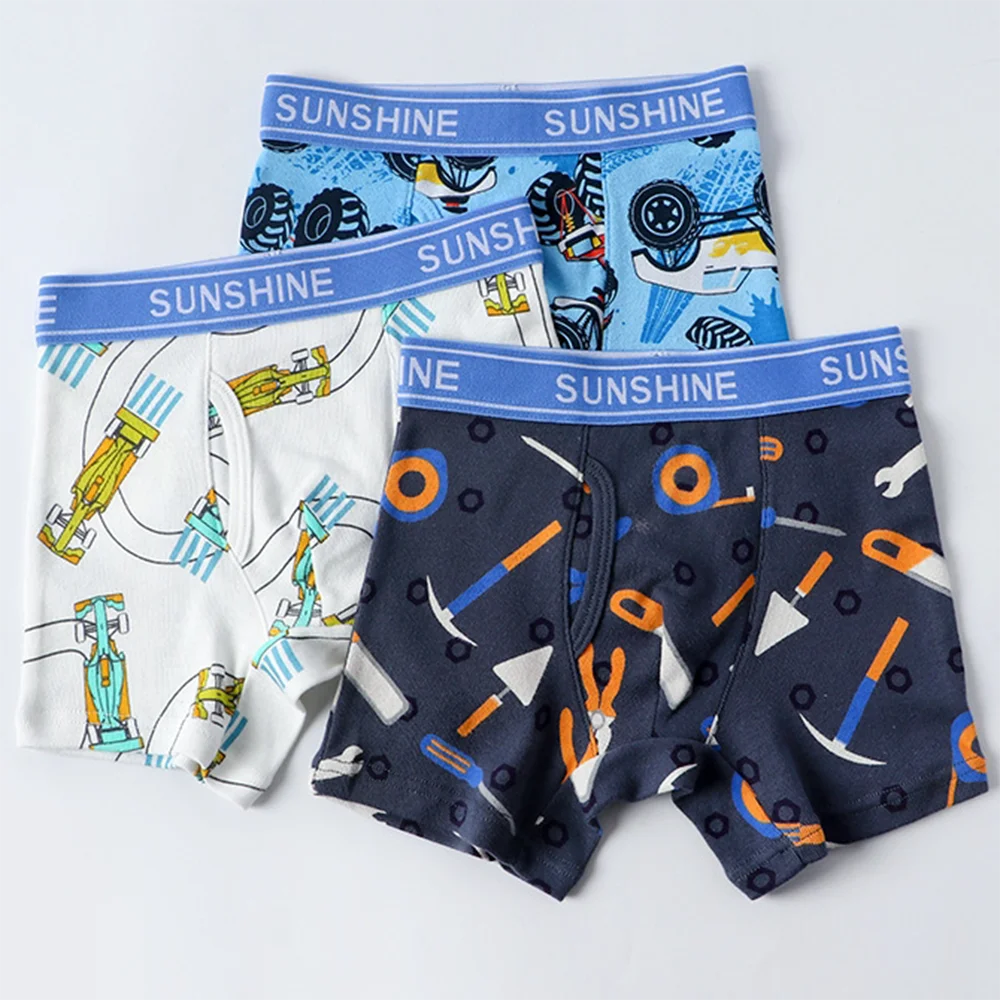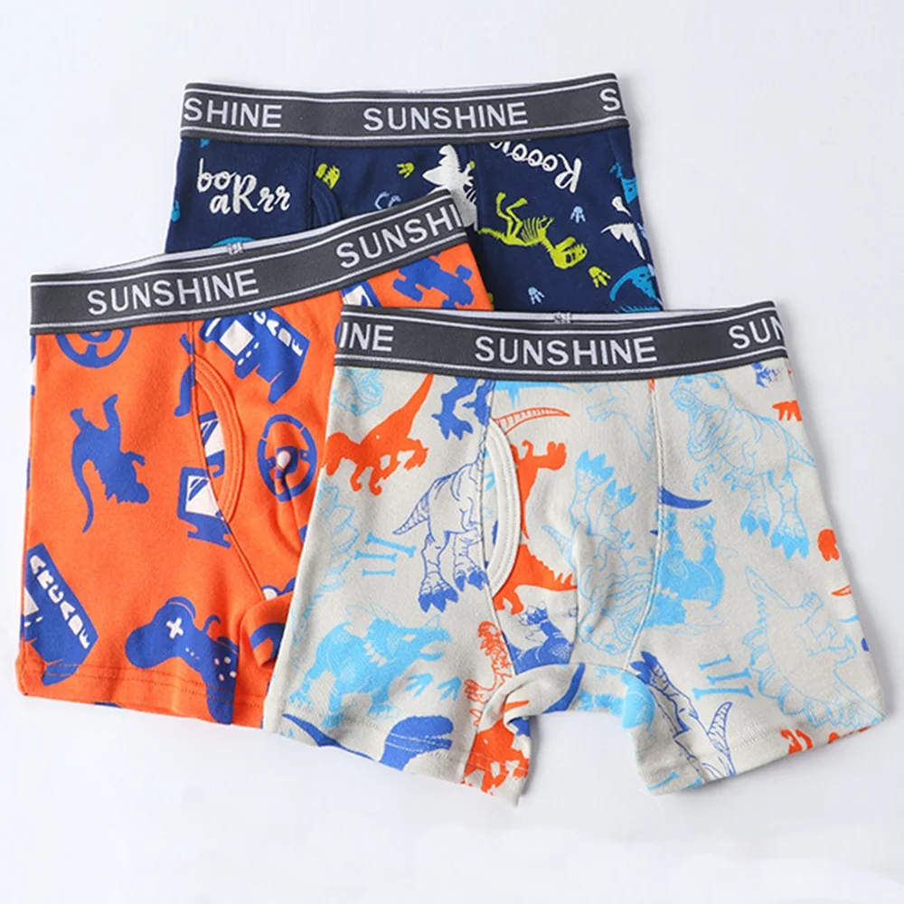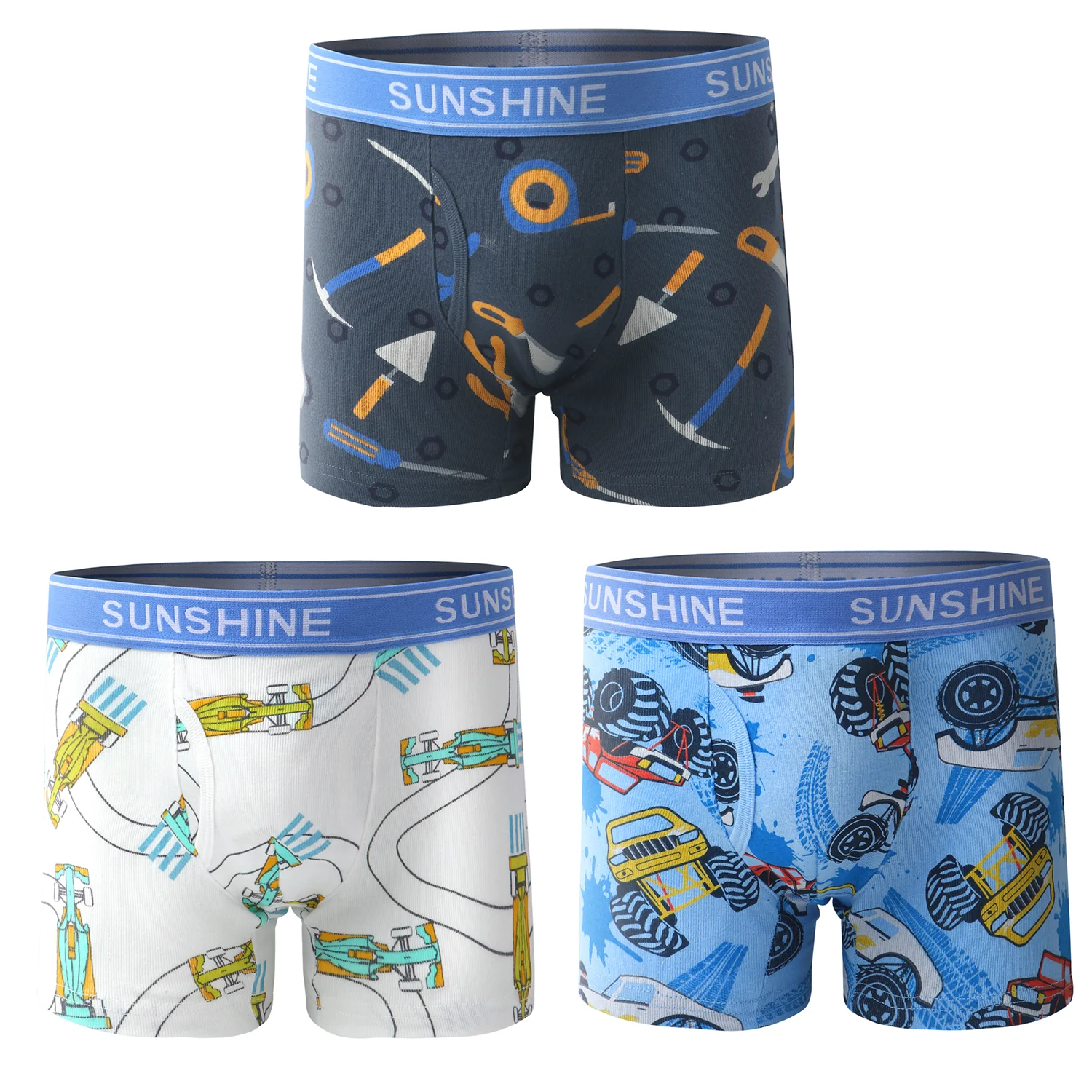 Wholesale & ODM Colorful Knit Fabric Cute Pattern Cartoon Boy Cotton Boxer Underwear 3pcs/6pcs