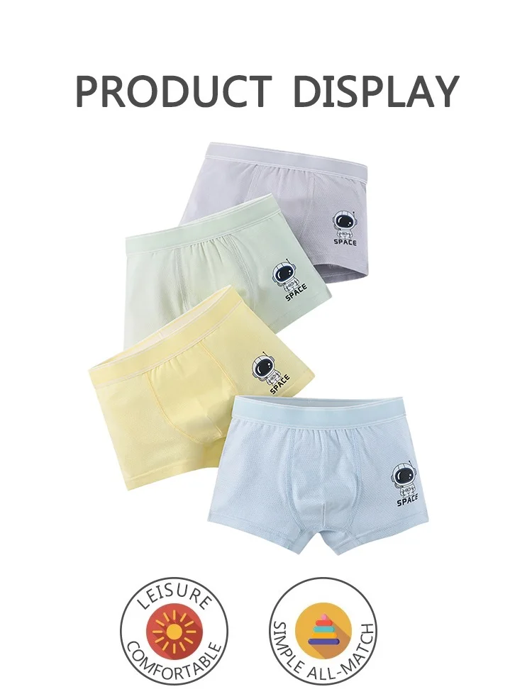 Set of 4 breathable cotton boys' underwear with fun space patterns