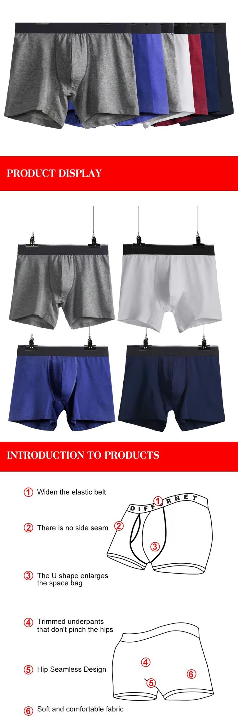 Men's Underwear Boxer Briefs Premium Cotton Custom Logo 5 Inch Inseam Long Men Underwear Boxer Plus Size Underwear for Men